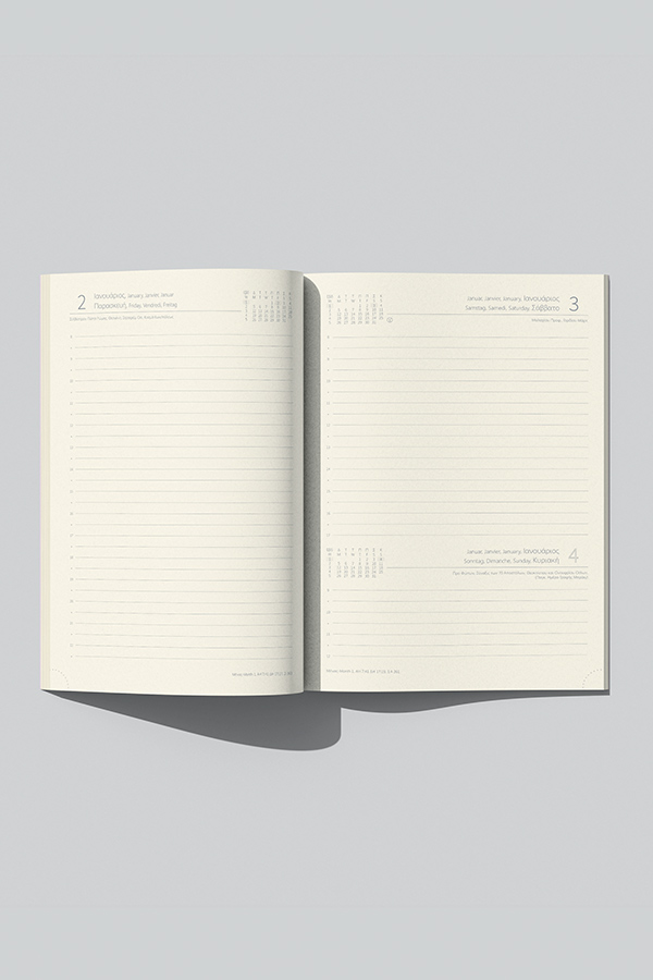 - Σελίδες σημειώσεων, τηλ. ευρετηρίου και εξοδολογίου στο τέλος του ημερολογίου
